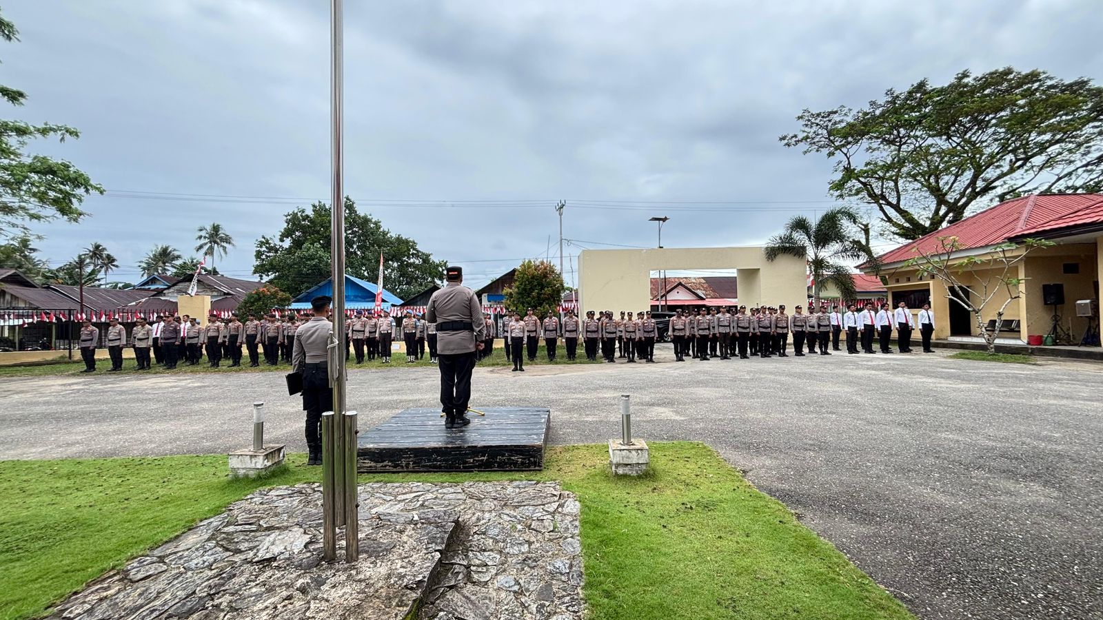 Bertindak selaku Inspektur Upcara Kapolres Buru Selatan A.K.B.P Andi P. Lorena, S.I.K., M.H., Perwira Upcara Kapolsek Namrole AKP Donal Johanes Ilely, S.H. dan Komandan Upacara IPDA Joleks Hermando Nirahua. Serta diikuti Pejabat Utama Polres Buru Selatan, Personil Polres Buru Selatan serta Personil Polsek Namrole.